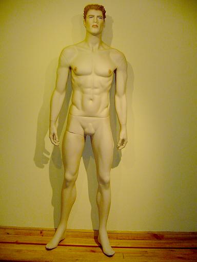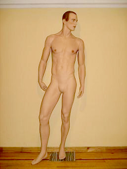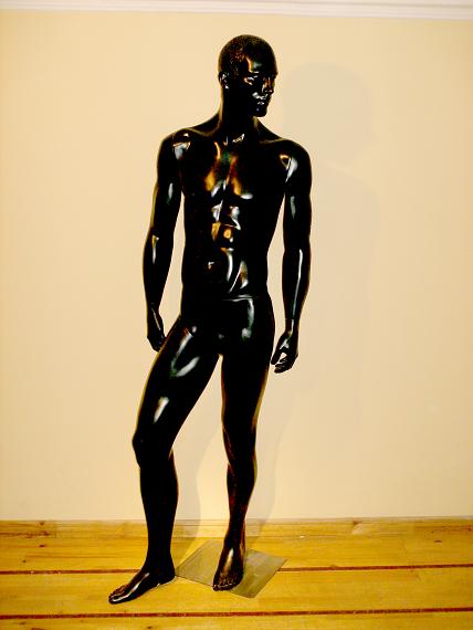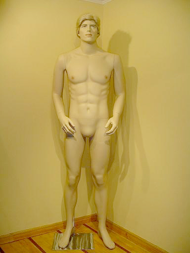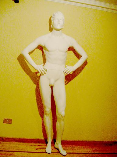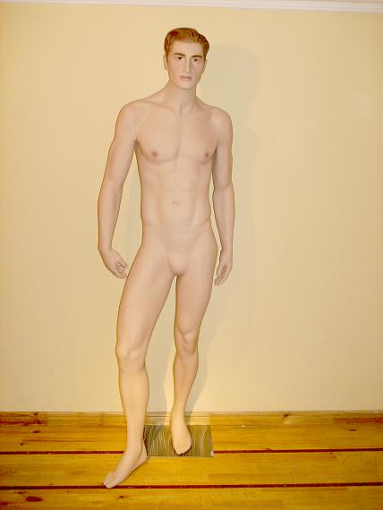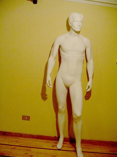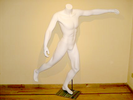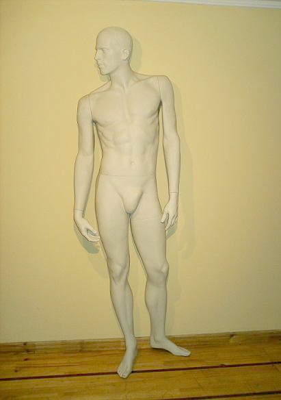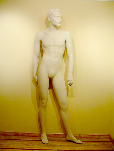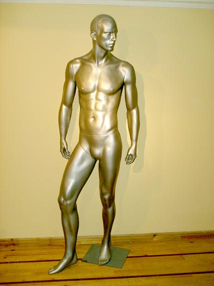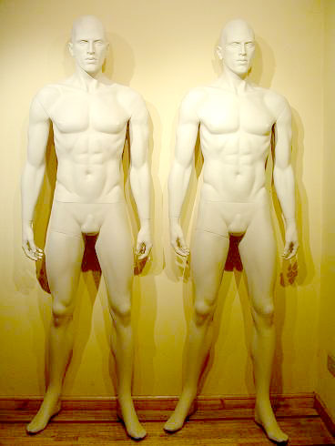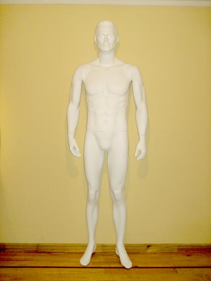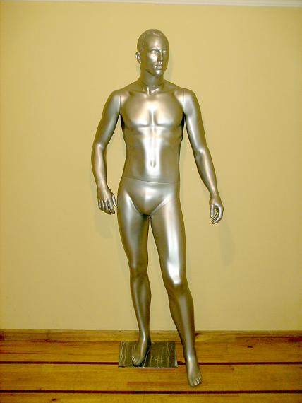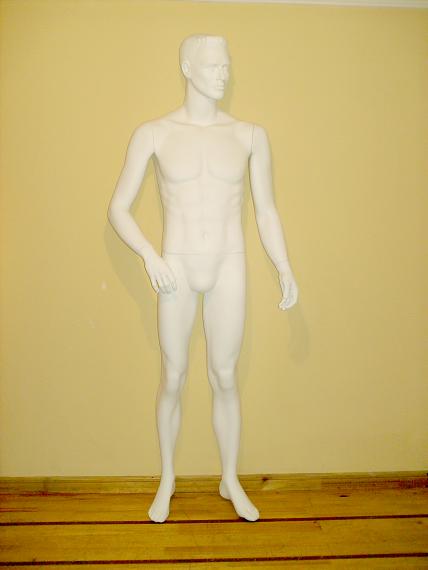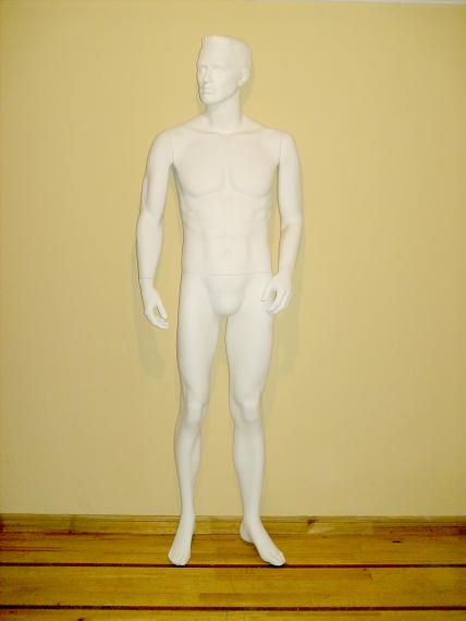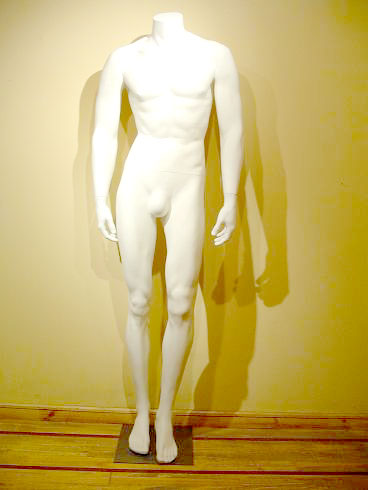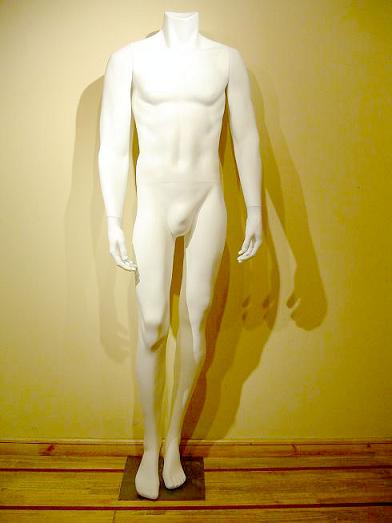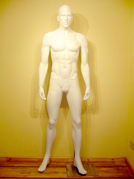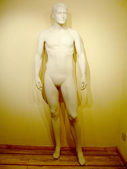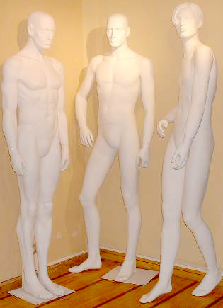 Maniquíes varón cuerpo completo con cabeza, pintados en un color (blanco, negro, piel, gris, etc).