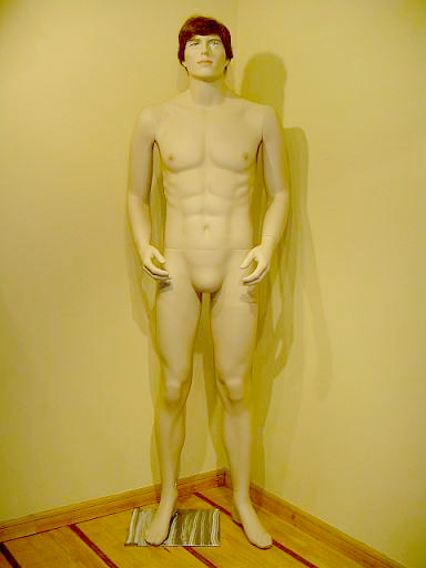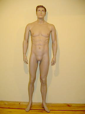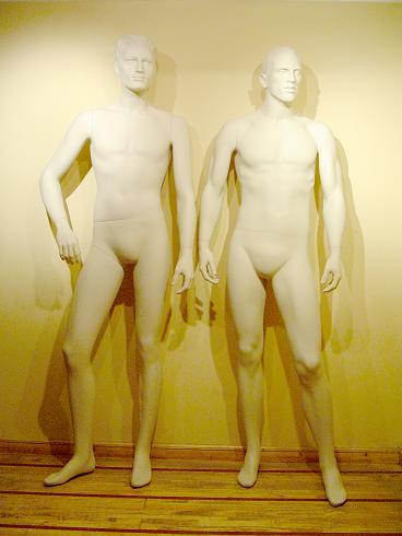 Maniquíes de varón cuerpo completo con cabeza, maquillados.